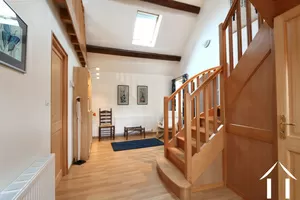 Estate agency fees are paid by the vendor5 steps bring you up to a landing that reveals the different levels with a central staircase. You are immediately captured by the light and the volumes giving a modern and spacious feeling. A reading area on one side of the stairs and an office area on the other side. A door opens onto a first bedroom with built in closets and a window looking out on the street facing east. A second door opens onto a bathroom with toilet. The floors are laminated parquet.