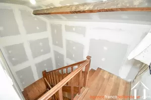 Halfway up the stairs, you can see that work has been carried out, such as plasterboarding the hallway and removing old layers of wallpaper in the first-floor rooms, and that (new) electrical cables are hanging from the ceiling in various places. There's also a lot of work waiting for the new buyer in this house. The good thing is that everything can be finished to suit individual tastes and colours! Almost all the window frames have been replaced with PVC copies.OutbuildingsA barn (33 m²) adjoins the old house. It includes a garage accessible from the road, a workshop, a boiler room and an old bathroom.